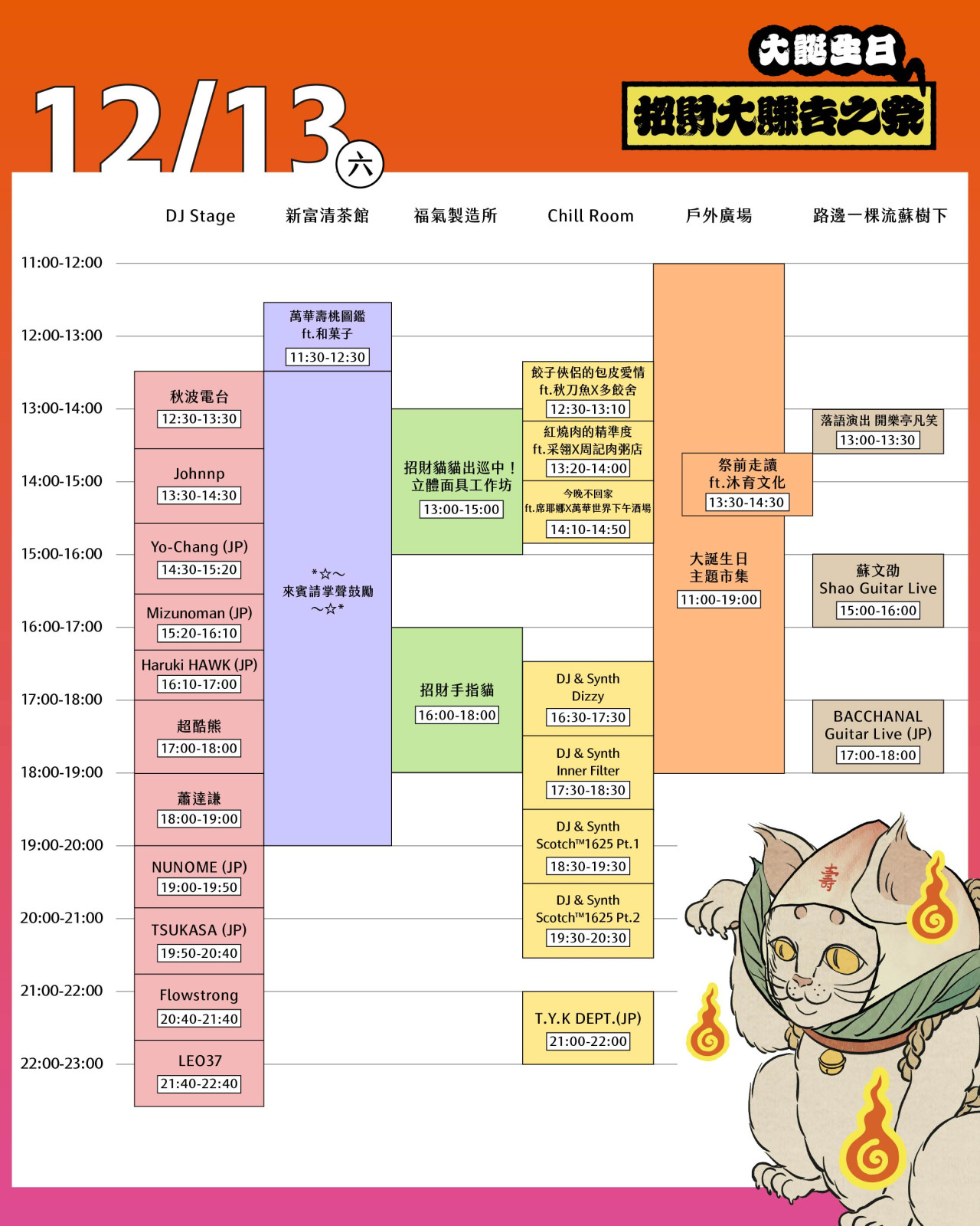 在2025年的尾聲,《新富有樂市》將攜手《貳零貳伍招財大賺吉の祭》共同舉辦老市場古蹟的祝壽會,獻上「大誕生日」!借鑑⽇語「お祭り(Omatsuri)」的精神,將舉辦主題市集、音樂演出、野台開講、系列活動體驗,與象徵地方精神的招財貓出巡萬華街頭,為新富町文化市場90年的時光積累,忠泰基金會長駐萬華的10年深耕,與萬華世界下午酒場的3年新生,帶來感念地方記憶而迎接未來的慶祝party,看見在地經營發展的無限可能。