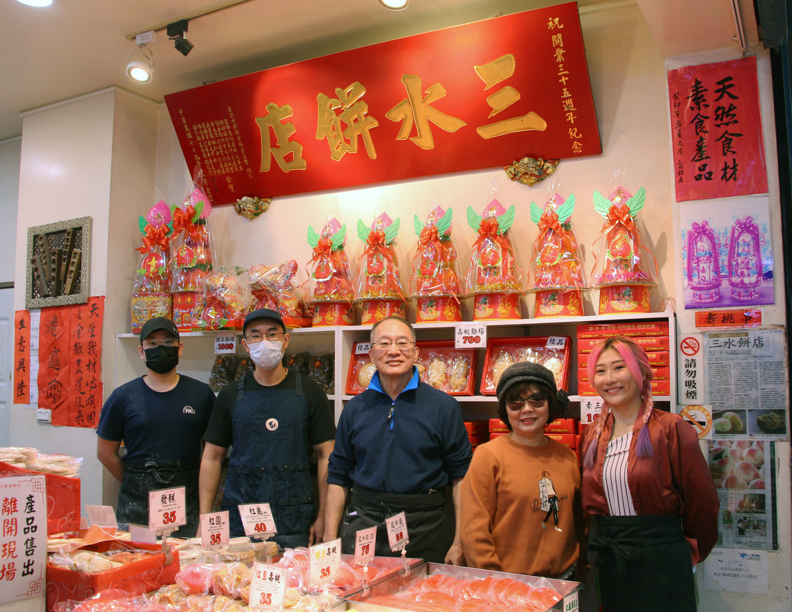 坐落於萬華龍山寺周邊的信仰生活圈,在地傳統餅舖長年扮演著維繫宗教文化與信眾情感的重要角色,也讓店家更加重視,如何以有形的糕餅技藝,延續與香客之間多年累積的無形信任。做為走過七十年的老品牌,老闆娘認為經營的關鍵不僅在於創新,更在於傳承上一代對顧客的體貼與誠意。除了在價格上堅持童叟無欺,配方上也盡量減糖、減脂,讓老顧客能吃得健康、安心。她笑著說:「當你很用心在做的時候,其實顧客是感受得到的。」或許正是這份樸實而堅定的心意,讓三水素食餅舖在香火鼎盛的萬華街頭,持續凝聚著屬於歲月與信任的味道。